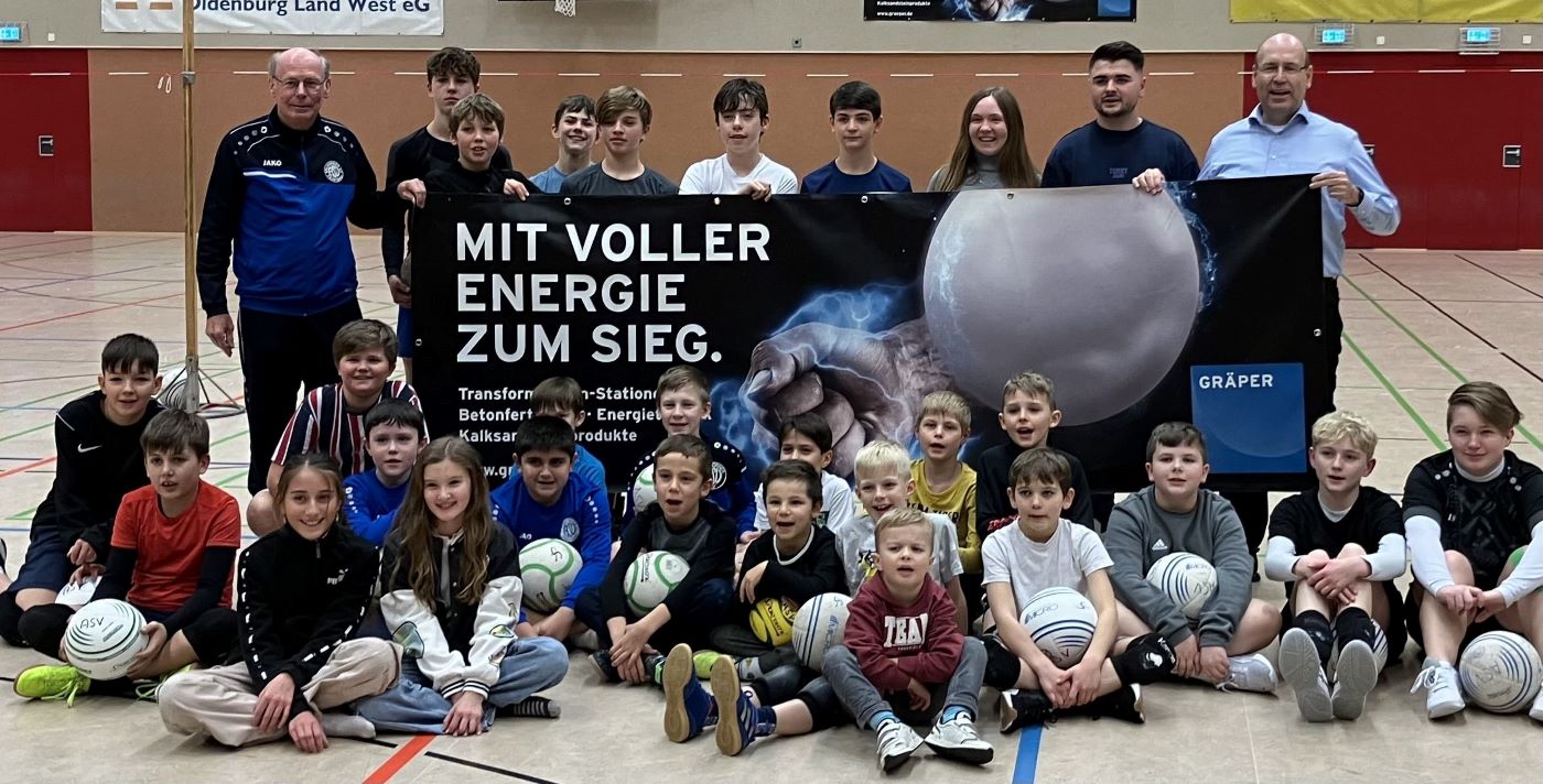 12.12.2023: Über insgesamt EUR 3.000 konnte sich die Jugendabteilung der Ahlhorner Faustballer freuen - eine Unterstützung durch die GRÄPER-Gruppe im Jahr 2023 - hier beim Trainingsbesuch diese Woche vertreten von die Ausbildungsbeauftragten Kristina Pfeifer und Jonas Roda sowie dem Personalleiter Ole Marquardt (stehend rechts). Der ASV verwendete den Betrag insbesondere für die Ausrichtung von Schüler- und Jugendmeisterschaften sowie für die Intensivierung der Nachwuchsarbeit.