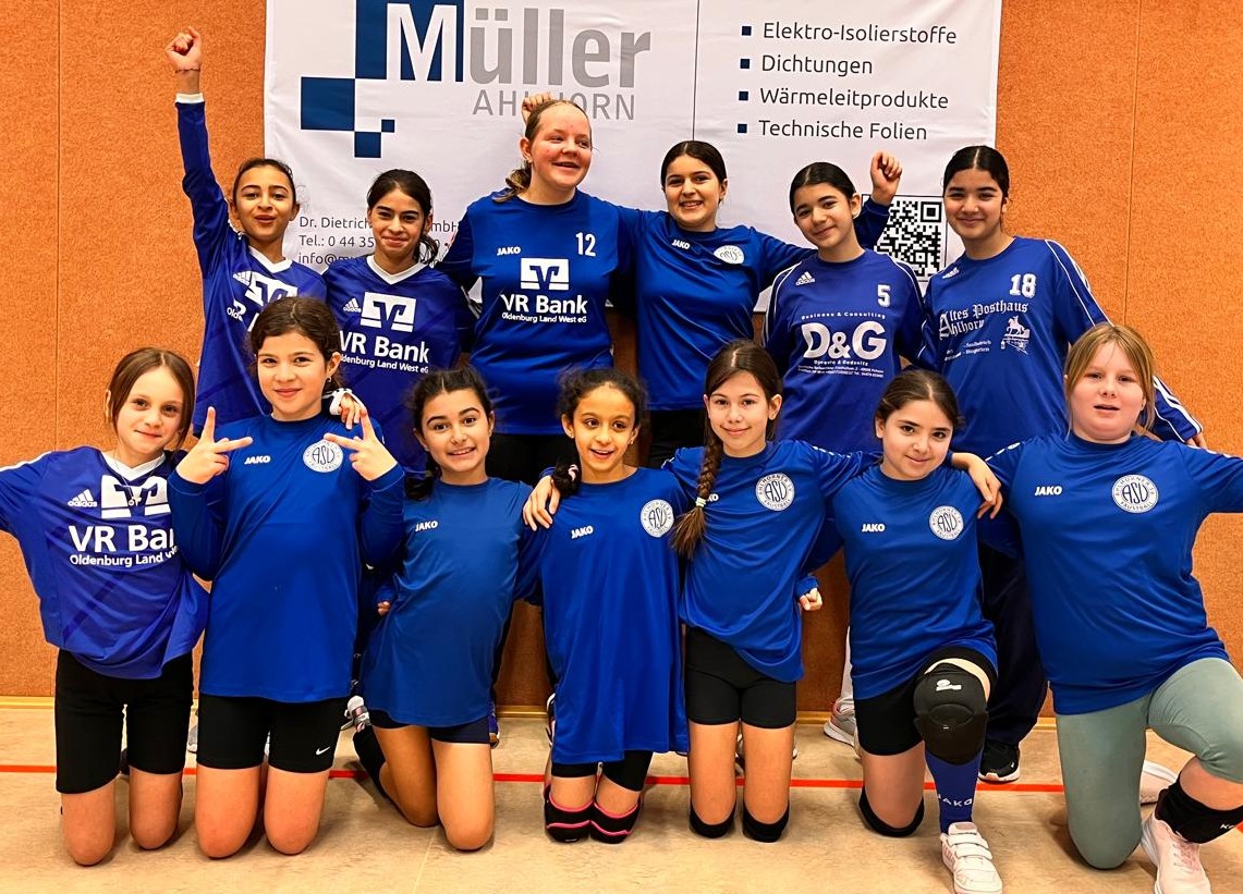 Ahlhorn II in der wU12 (Bezirksliga): Semira Oynak, Talea Köhler-Schwartjes, Betreuerin Bianca Nadermann, Maartje Evers, Jordan Nadermann, Hannah Nordbrock.